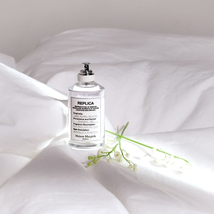 Lazy Sunday Morning EDT by Maison Margiela (2013) captures the feeling of freshly laundered sheets and gently warmed skin. The combination of aldehydes, pear, and lily of the valley creates a pure, fresh opening. Iris, rose absolute, and orange blossoms provide floral elegance at the heart, while the base of Indonesian patchouli, delicate ambrette oil, and white musk is soft and soothing. Ideal for spring and summer, it's perfect for relaxed days, working from home, or adding gentle everyday touches.